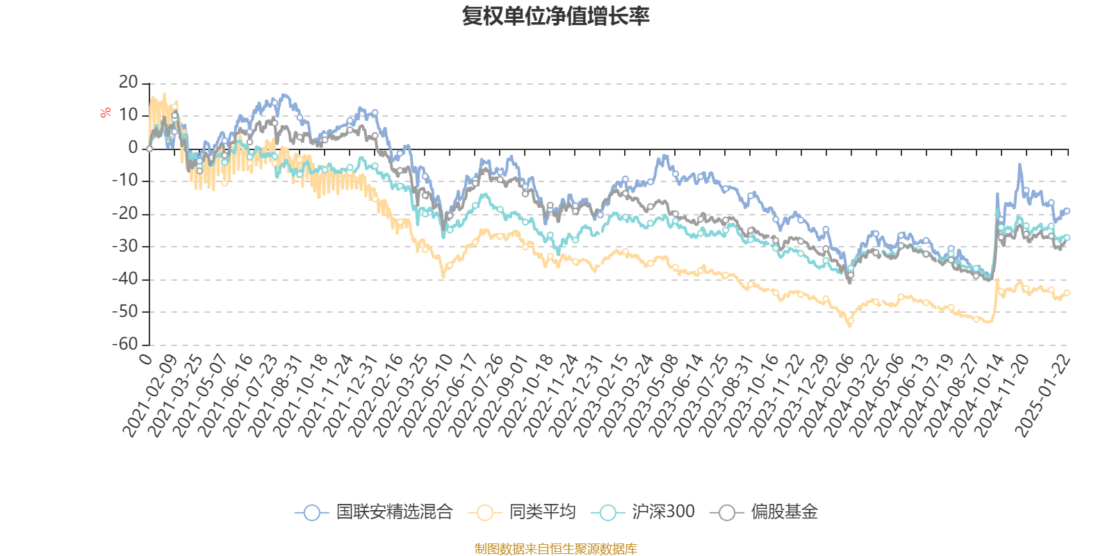 截至1月22日,国联安精选混合近三个月复权单位净值增长率为-2.50%,位于同类可比基金116/256;近半年复权单位净值增长率为16.90%,位于同类可比基金36/256;近一年复权单位净值增长率为22.28%,位于同类可比基金54/256;近三年复权单位净值增长率为-19.89%,位于同类可比基金67/232。