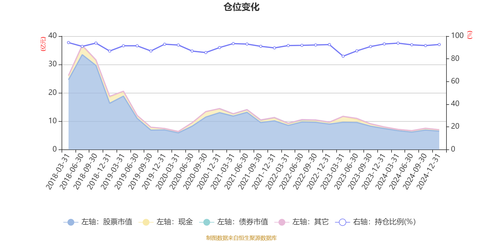 据定期报告数据统计,近三年平均股票仓位为91.02%,同类平均为85.68%。2018年一季度末基金达到94.34%的最高仓位,2023年一季度末最低,为82.33%。